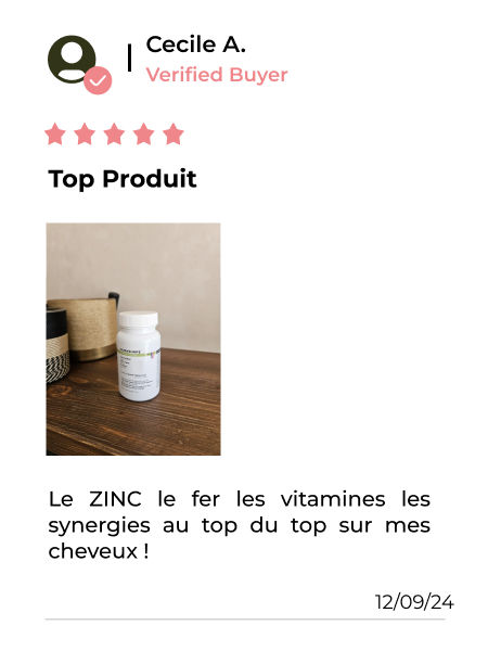 Cysteine, combined with Iron, Zinc, Copper and Selenium, strengthens hair structure and protects your scalp, ensuring healthy, thick and naturally radiant hair.